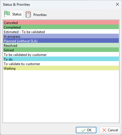 The list of all possible ticket statuses is retrieved. A default color is assigned to certain statuses. To change the color, double-click on the line.