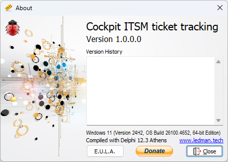 - ledCockpitITSM_Tickets.ini → parameters of the program. Sensitive data is encrypted.
