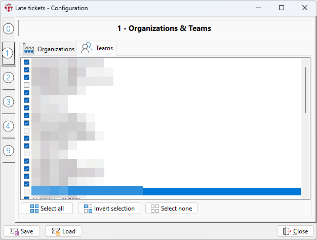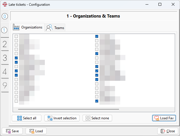 Et pour chaque organisation, sélectionner les équipes pour lesquelles il faut analyser les tickets.