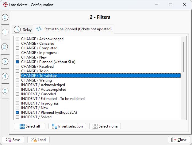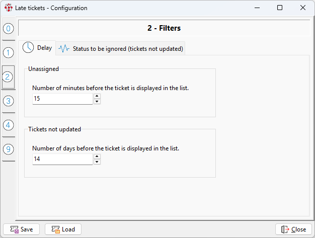Différents filtres sont disponibles pour ne pas prendre en compte tous les tickets trouvés lors de l'analyse.