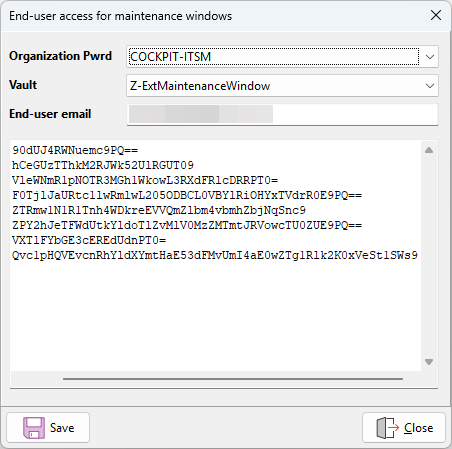Le programme destiné aux utilisateurs finaux a besoin d'un vault pour le stockage des mots de passe des utilisateurs. Il faut sélectionner celui-ci au moyen des listes déroulantes “Organization Pwrd” et “Vault”.