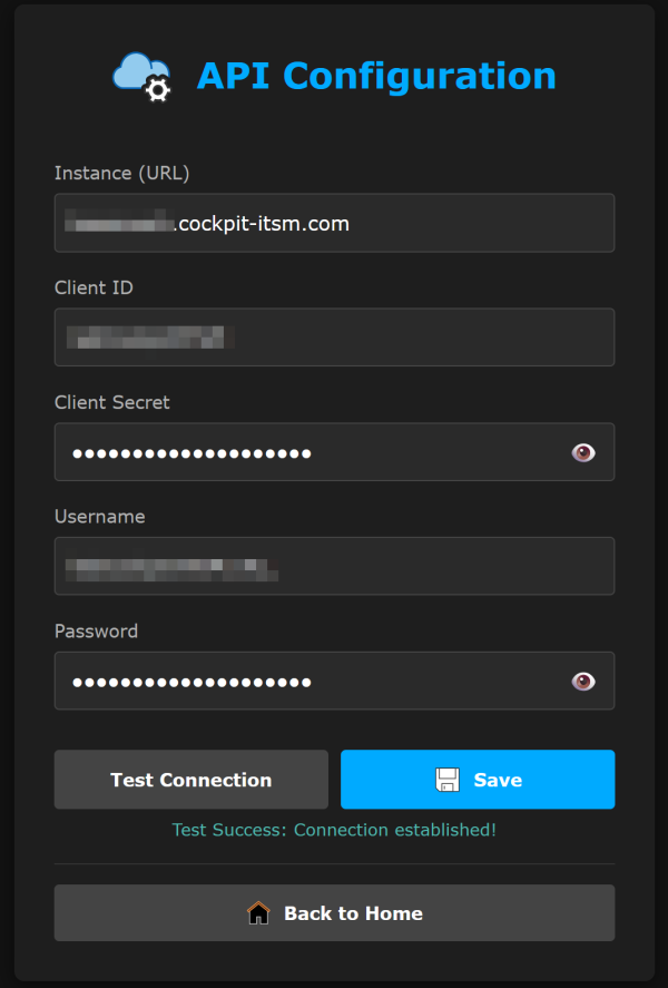 <!DOCTYPE html> <html> <head> <meta http-equiv="content-type" content="text/html; charset=UTF-8"> <meta name="viewport" content="width=device-width, initial-scale=1.0"> <title>P1 Notifications 4 Cockpit ITSM - API Configuration</title> <link rel="stylesheet" href="style.css"> <link rel="icon" type="image/x-icon" href="img/favicon.ico"> </head> <body> <div class="container"> <header style="display: flex; flex-direction: row; align-items: center; justify-content: center; margin-bottom: 30px; gap: 15px;"> <h1 style="margin: 0; color: #00aaff; border: none; font-size: 1.8rem;"><img src="img/cloud-filled-gear.svg" alt="API Icon" style="width: 48px; height: 48px;"> API Configuration</h1> </header> <form id="configForm"> <div class="form-group"> <label for="instance">Instance (URL)</label> <input type="text" id="instance" name="instance" placeholder="https://your-instance.cockpit-itsm.com" value=""> </div> <div class="form-group"> <label for="clientId">Client ID</label> <input type="text" id="clientId" name="clientId" value=""> </div> <div class="form-group"> <label for="clientSecret">Client Secret</label> <div class="password-wrapper"> <input type="password" id="clientSecret" name="clientSecret"> <span class="toggle-password" onclick="togglePassword('clientSecret')"><img src="img/eye.svg" style="width:18px;height:18px;"></span> </div> </div> <div class="form-group"> <label for="username">Username</label> <input type="text" id="username" name="username" value=""> </div> <div class="form-group"> <label for="password">Password</label> <div class="password-wrapper"> <input type="password" id="password" name="password"> <span class="toggle-password" onclick="togglePassword('password')"><img src="img/eye.svg" style="width:18px;height:18px;"></span> </div> </div> <div class="form-group"> <label for="influxdbToken">InfluxDB Admin Token</label> <div class="password-wrapper"> <input type="password" id="influxdbToken" name="influxdbToken" placeholder="xxxxxxxx-xxxx-xxxx-xxxx-xxxxxxxxxxxx"> <span class="toggle-password" onclick="togglePassword('influxdbToken')"><img src="img/eye.svg" style="width:18px;height:18px;"></span> </div> </div> <div class="button-group"> <button type="button" id="btnTest" class="btn-secondary">Test Connection</button> <button type="button" id="btnSave" class="btn-primary"><img src="img/save.svg" alt="" class="btn-icon">Save</button> </div> </form> <div id="statusMessage" class="status-message"></div> <div class="navigation-group" style="margin-top: 1rem; border-top: 1px solid #333; padding-top: 1rem; text-align: center;"> <a href="Config.html" class="btn-secondary" style="width:100%;"> <img src="img/gear-filled.svg" alt="" class="btn-icon">Back to Configuration </a> </div> </div> <script src="libs/socket.io.min.js"></script> <script src="app_cockpit.js"></script> </body> </html>