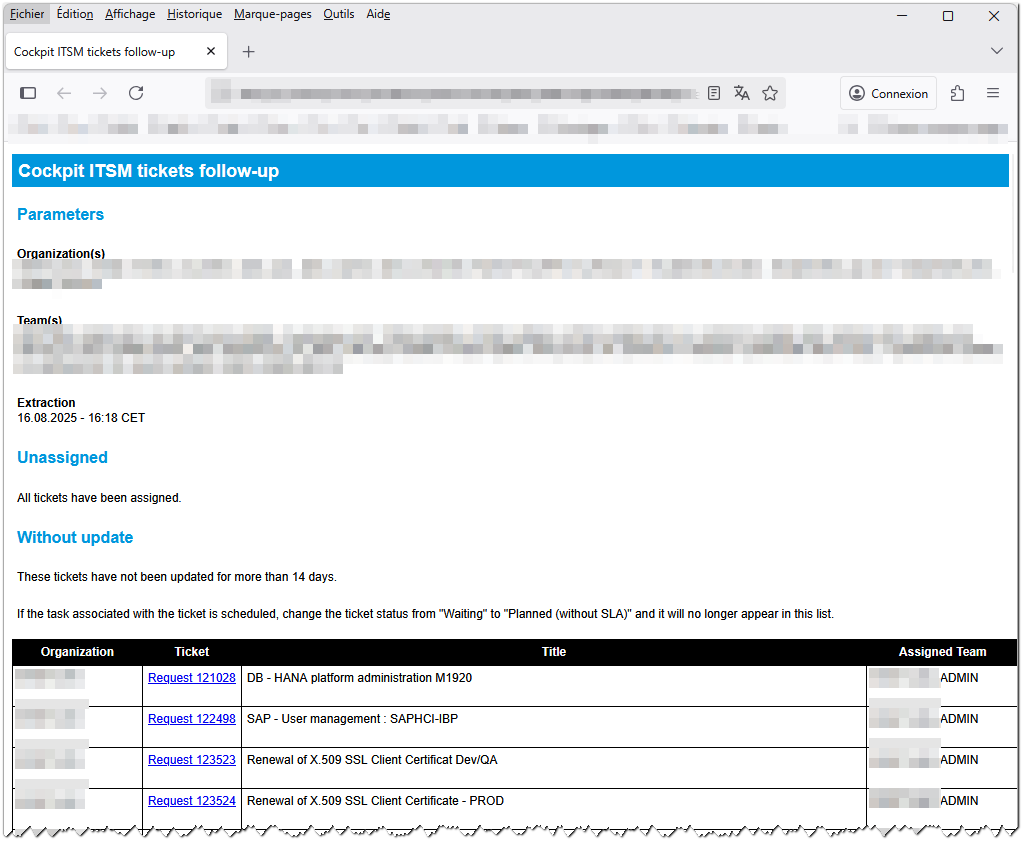 If you are copied on this email, it means that you are part of one of the teams for which the tickets are analyzed (see the list at the top of the page). You receive this email for informational purposes only.