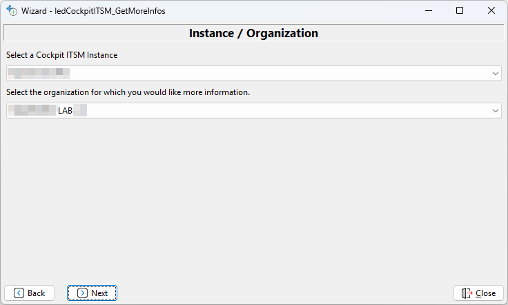 Sélectionner l'instance Cockpit ITSM ainsi que l'organisation