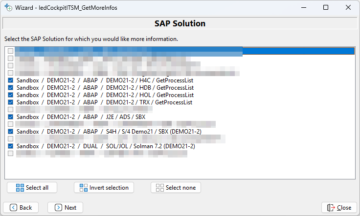 Parmi toutes les bases de données HANA, sélectionnez celles pour lesquelles vous désirez récupérer des informations supplémentaires.