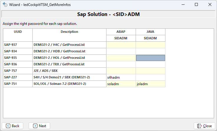 Pour chaque base de données, sélectionner l'utilisateur SIDADM. Il faut que ces utilisateurs soient saisis dans le coffre fort de Cockpit ITSM et qu'ils soient liés à la base de données. Voir cet article de la KB: Gestion des données sécurisées