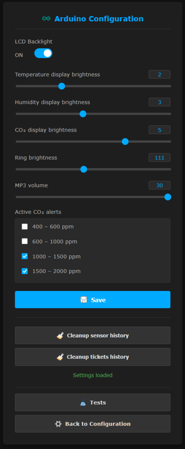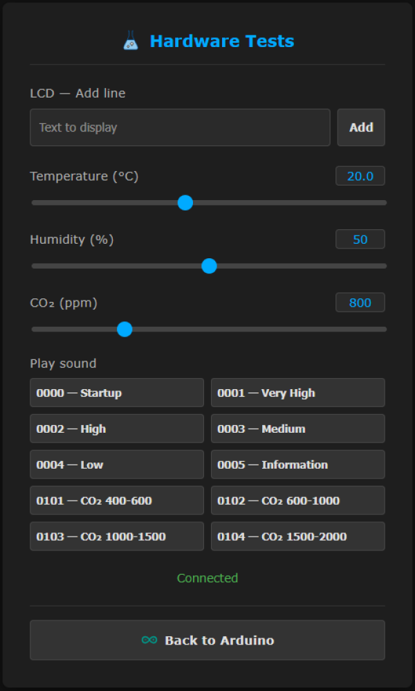 - Affichage de la température, du taux d’humidité et de la concentration en CO2