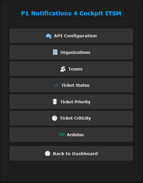 - Accès à la configuration et à la liste des tickets
