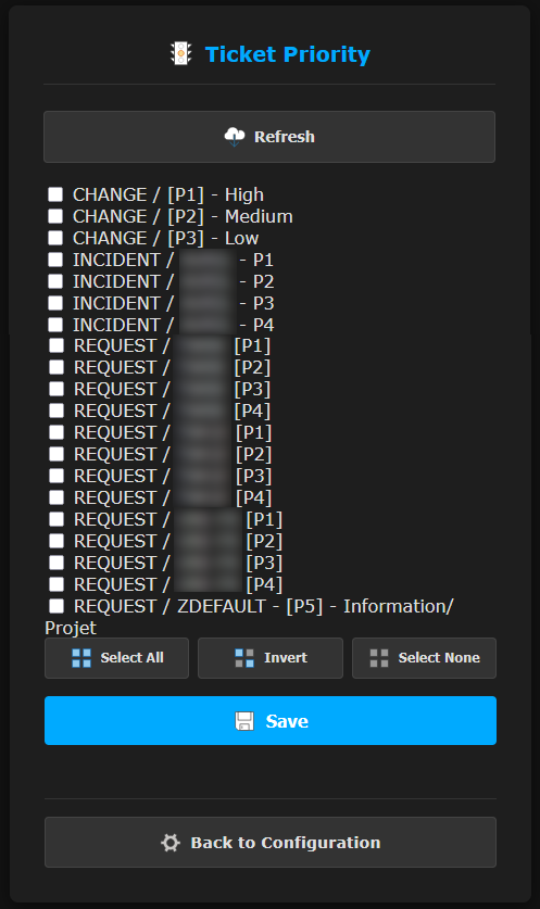 Pour chaque priorité sélectionnée précédemment, y assigner une criticité de P1 (VERY HIGH) à P5 (INFORMATION).