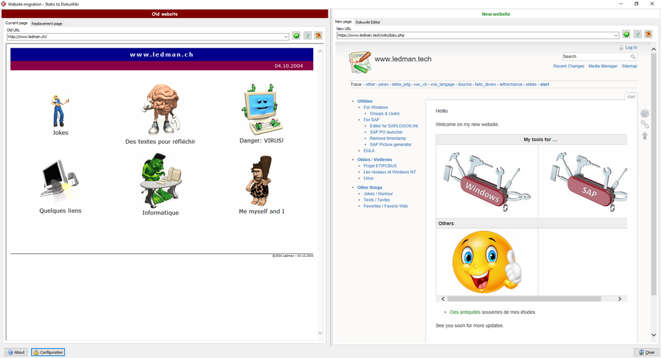 J'ai créé ce petit programme pour migrer les pages depuis mon ancien site web www.ledman.ch vers le site que vous êtes en train de consulter.
